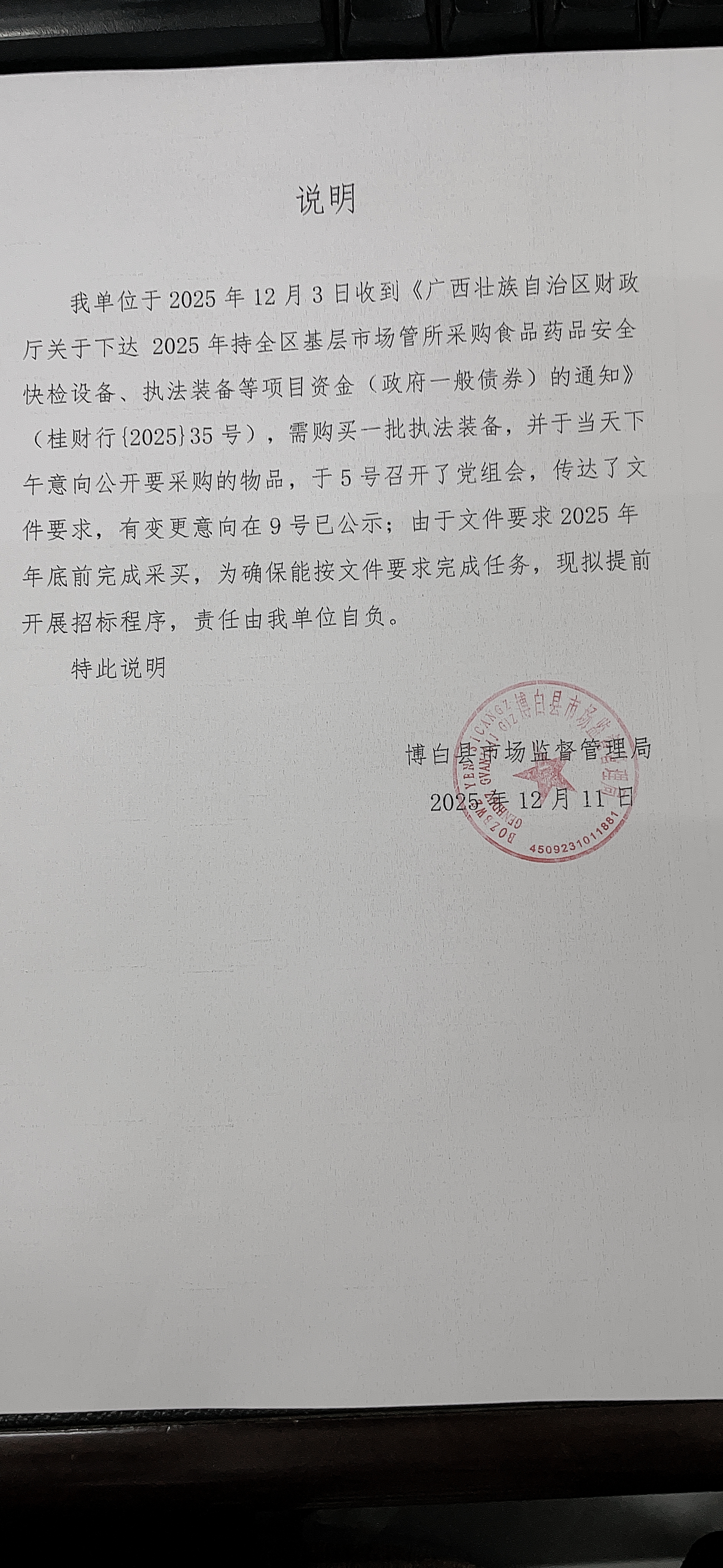 采购食品快速检验箱、笔记本电脑,执法记录仪一批采购项目的潜在供应商应在“广西政府采购云”平台(******/)获取采购文件,并于2025年12月22日 15:30(北京时间)前提交响应文件。