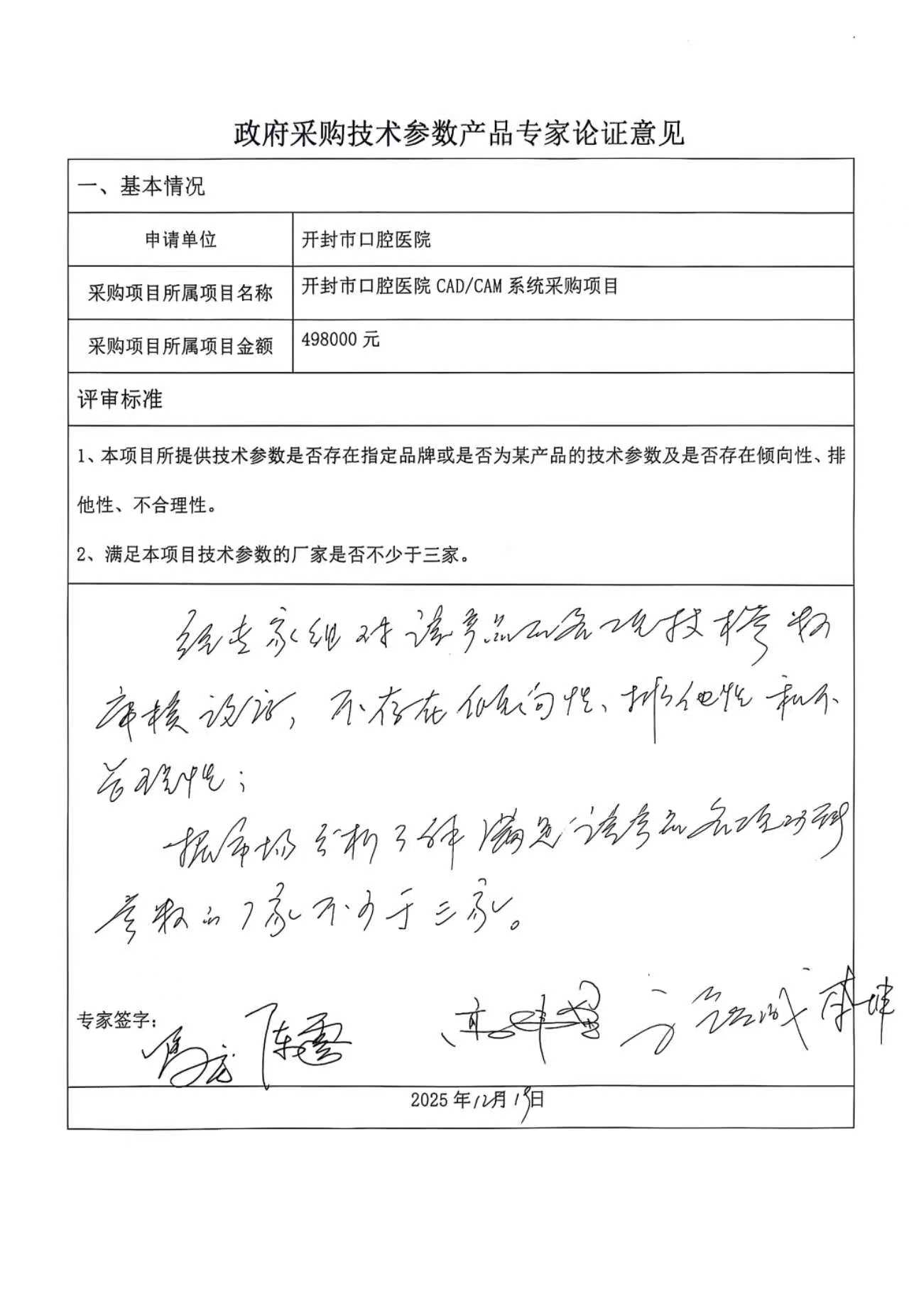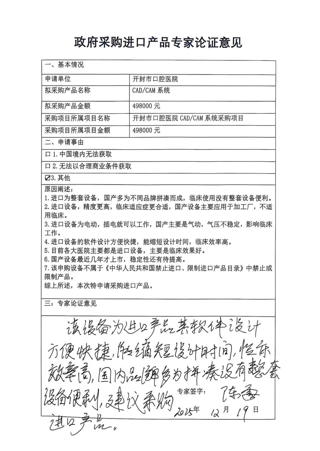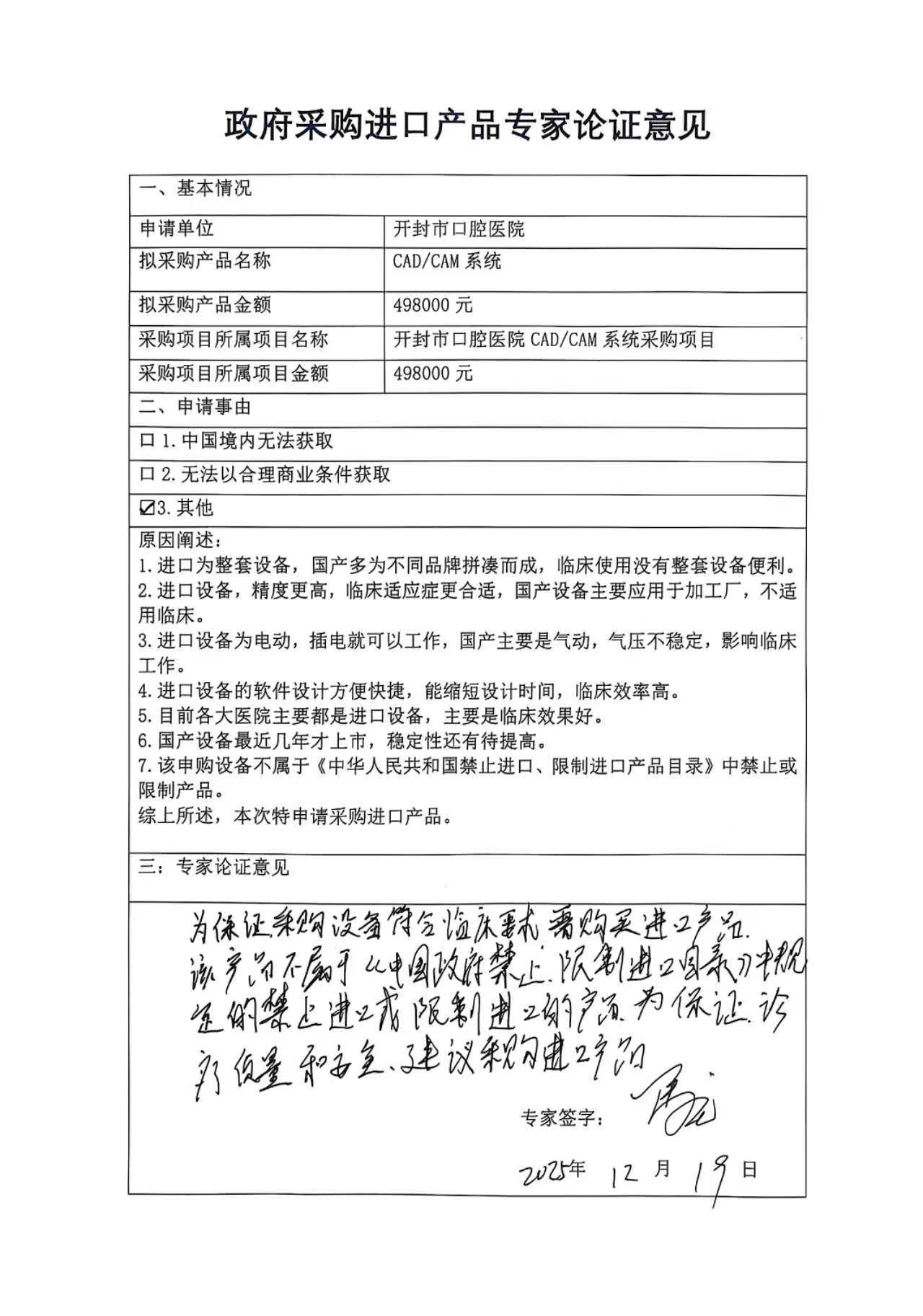 开封市口腔医院CAD/CAM系统采购项目进口产品论证意见及技术参数公示